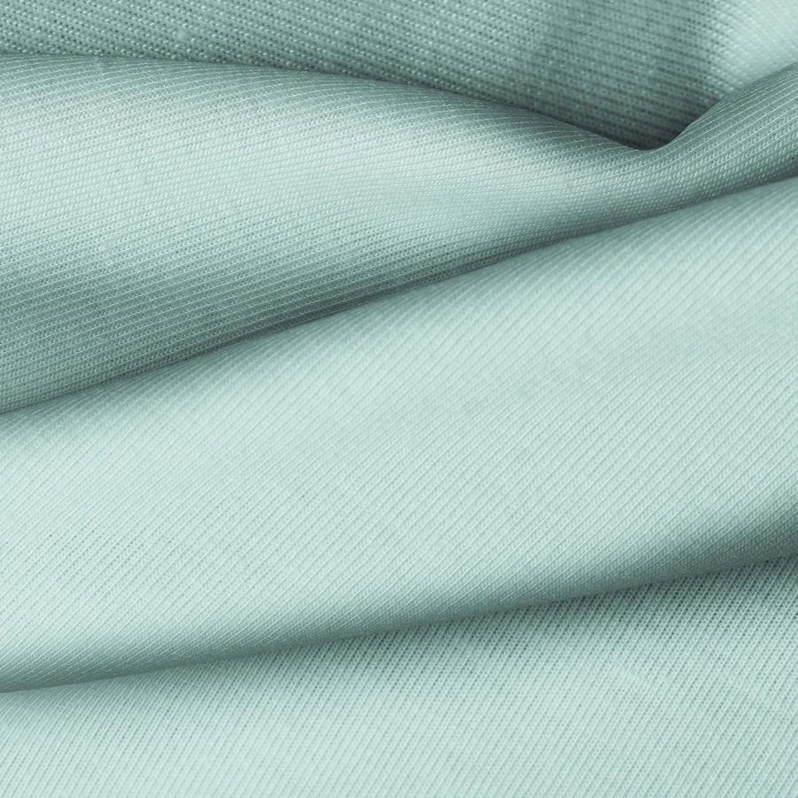 La tela base es una Punto Camiseta - Vanity de color Verde Menta, con un CMYK de 43 8 29 0. Este color combina perfectamente con tonos neutros como el blanco, gris y negro, resaltando su frescura y vitalidad.