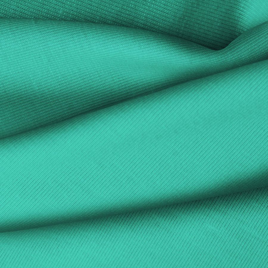 La tela está impresa con el color liso a una sola cara por impresión digital textil, lo que garantiza una alta definición y durabilidad en el estampado. La textura suave y elástica de la tela base se complementa perfectamente con el color vibrante y moderno del Verde Menta.