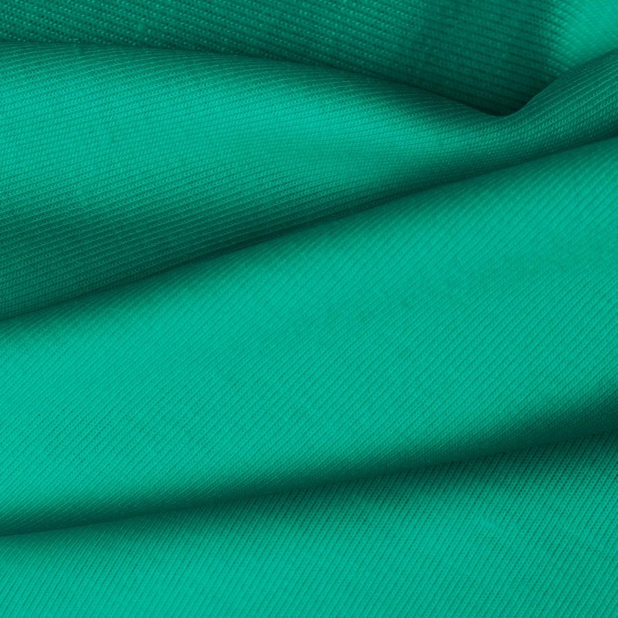 La tela base, Punto Camiseta - Vanity, tiene un color liso impreso en verde menta oscura, con un CMYK de 84 23 64 7. Este color simboliza la frescura y tranquilidad de la naturaleza, combinando perfectamente con tonos neutros como blanco, gris y beige.