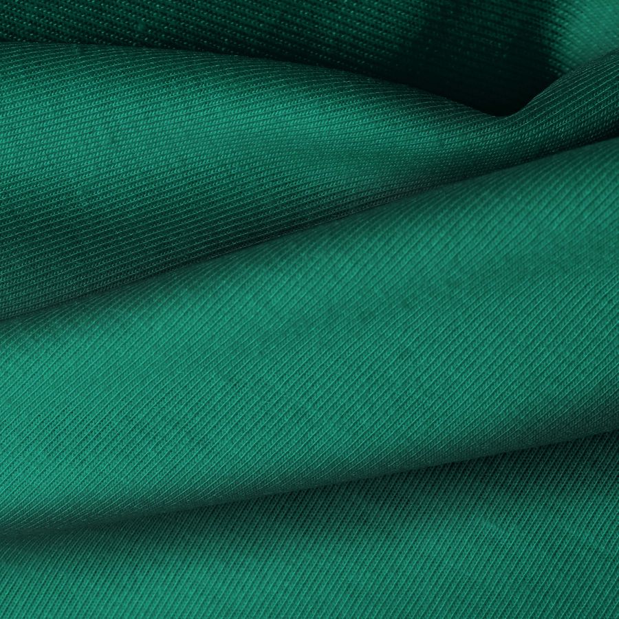 La tela base es una Punto Camiseta - Vanity de composición 95% POLIÉSTER, 5% ELASTÓMERO, con un gramaje de 185 gr/m2 y un ancho de tela de 160 cm. Está impresa en un color Verde Mar profundo con un CMYK de 91 39 73 41, el cual evoca la profundidad del océano y se combina armoniosamente con tonos neutros como el blanco y el gris. El tejido está impreso con el color liso a una sola cara por impresión digital textil.