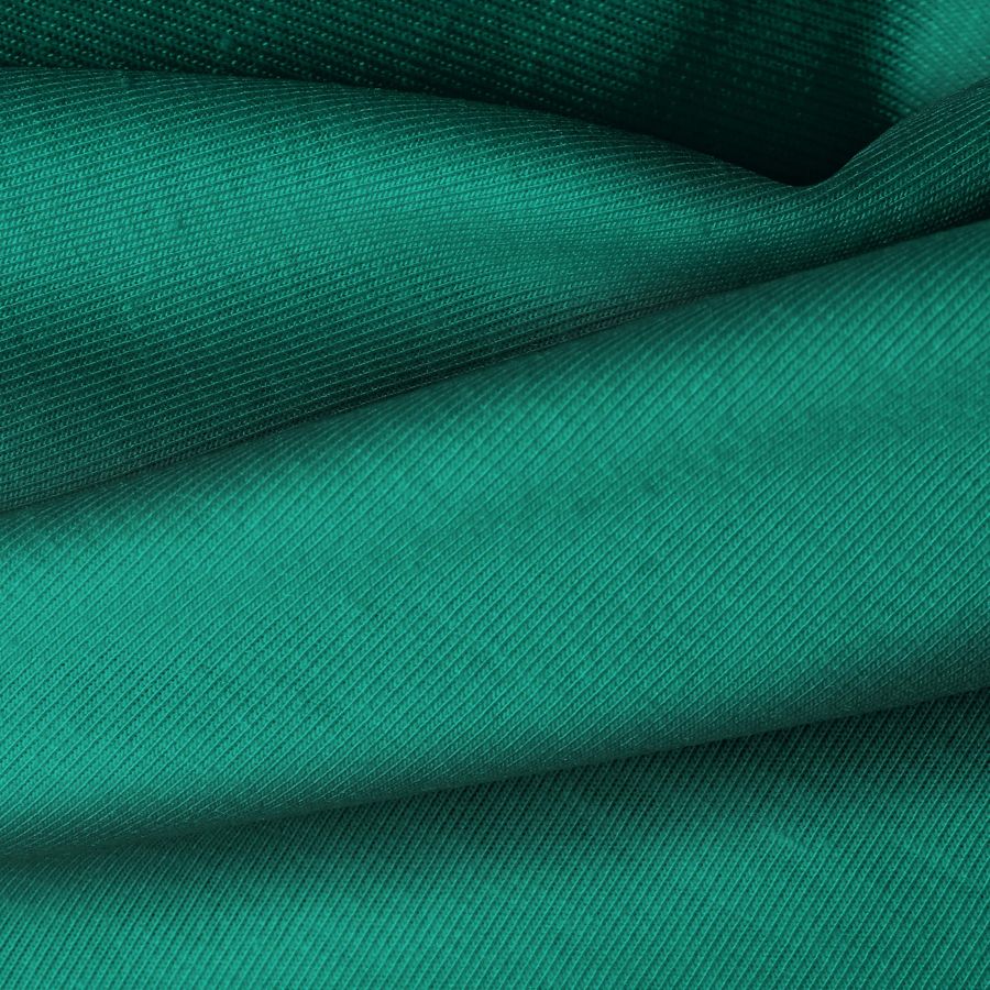 La tela base de Punto Camiseta - Vanity es de composición 95% poliéster y 5% elastómero, con un gramaje de 185 gr/m2. El color liso impreso es Verde Mar Profundo, con un CMYK de 89 35 67 29. Este color se caracteriza por su intensidad y profundidad, evocando la sensación de estar inmerso en las profundidades del océano. Combina especialmente bien con tonos neutros como blanco, gris y negro, así como con colores de la gama de los azules y verdes.