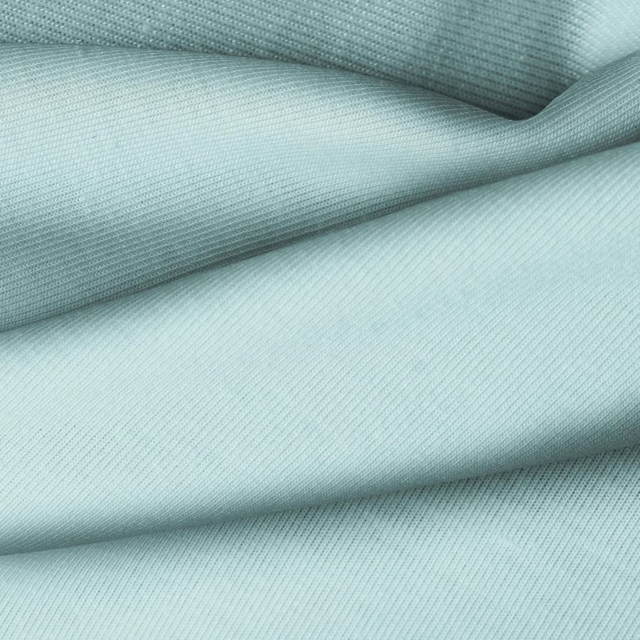 La tela base de la Punto Camiseta - Vanity es de punto, compuesta por 95% poliéster y 5% elastómero, con un gramaje de 185 gr/m2 y un ancho de 160 cm. El color liso impreso es verde menta, con una combinación de tintas CMYK de 43 8 25 0. Este color se destaca por su frescura y vitalidad, encajando perfectamente con tonos neutros como blanco, gris o negro.