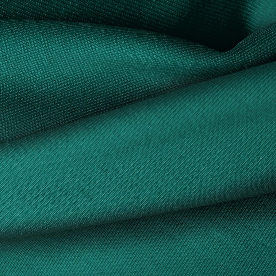 La tela base es Punto Camiseta - Vanity, de color verde teal profundo con un CMYK de 91 43 65 50. Este color simboliza la calma, la serenidad y la conexión con la naturaleza. Combina especialmente bien con tonos neutros como el blanco, el gris y el beige, así como con tonos más intensos como el azul marino o el borgoña.
