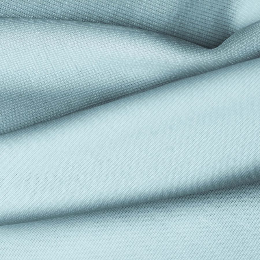La tela base, Punto Camiseta - Vanity, es de color azul claro con un CMYK de 42 8 16 0. Este color transmite calma y serenidad, combinando perfectamente con tonos neutros como blanco, gris y negro. El tejido está impreso con el color liso a una sola cara por impresión digital textil.