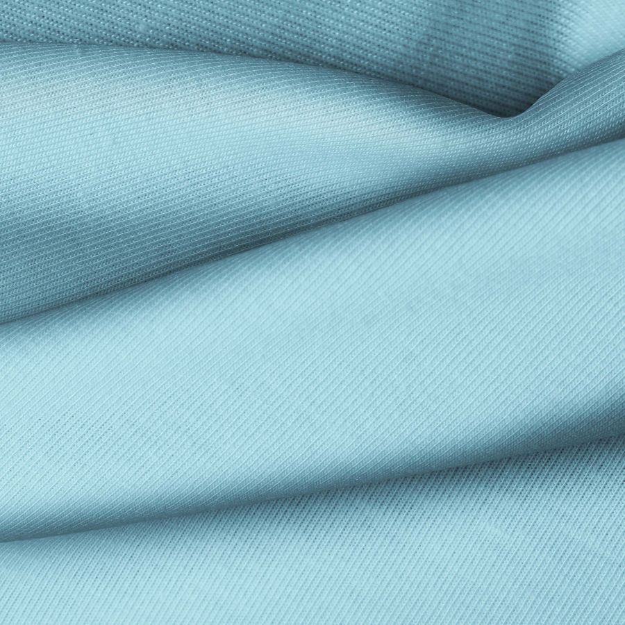 Las características generales de la tela base incluyen su textura suave y elástica, lo que la hace ideal para prendas cómodas y ajustadas al cuerpo. El color azul cielo aporta frescura y luminosidad a las prendas, siendo perfecto para un look fresco y versátil.