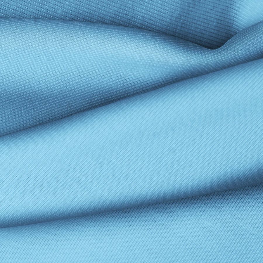 La tela base, Punto Camiseta - Vanity, se presenta en un color liso Azul Seda, con un CMYK de 60 20 1 0. Este color simboliza la calma y la serenidad, combinando a la perfección con tonos neutros como blanco o gris.