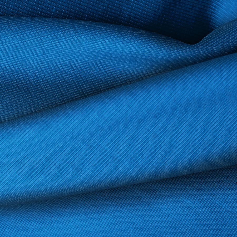 La tela base, Punto Camiseta - Vanity, tiene un color azul zafiro con una combinación de tintas Cyan 96, Magenta 66, Yellow 13 y Black 2 en un CMYK 96 66 13 2. Este color transmite tranquilidad y frescura, combina perfectamente con tonos neutros como blanco, gris y beige.