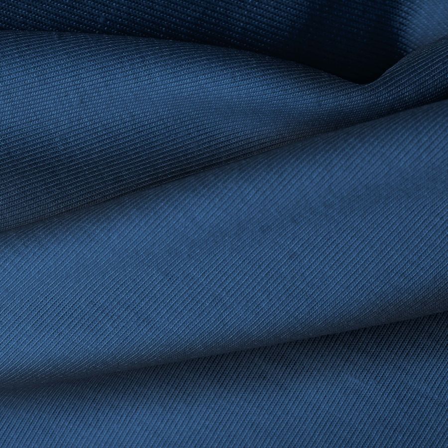 La tela base, Punto Camiseta - Vanity, tiene un color liso impreso en un tono Azul Profundo con un CMYK de 100 80 41 35. Este color simboliza la profundidad y calma, combinando perfectamente con tonos neutros como blanco, gris y negro.