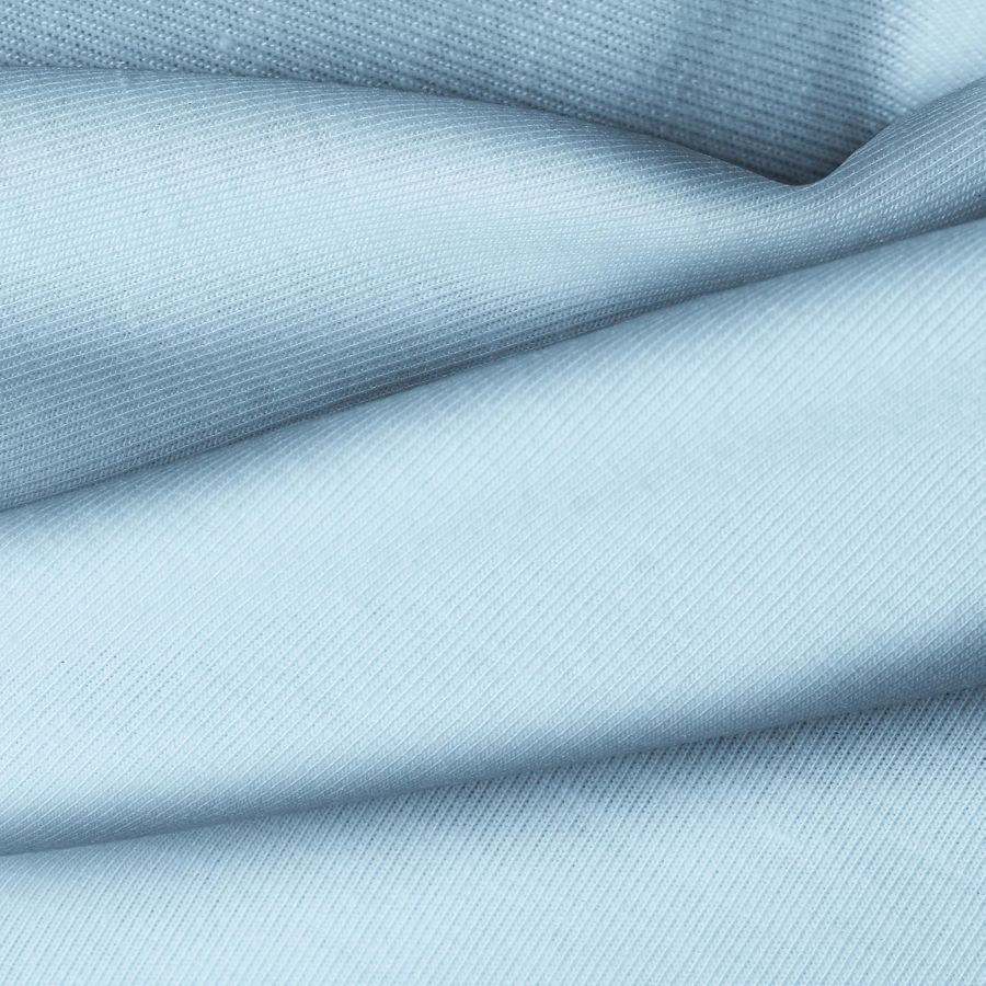 La tela base es Punto Camiseta - Vanity, de composición 95% POLIÉSTER y 5% ELASTÓMERO. El color liso impreso es Azul Agua, con un CMYK de 40 8 2 0. Este color es un azul suave y refrescante, que combina especialmente bien con colores neutros como blanco, gris y beige.
