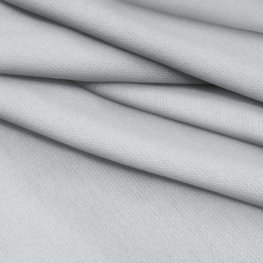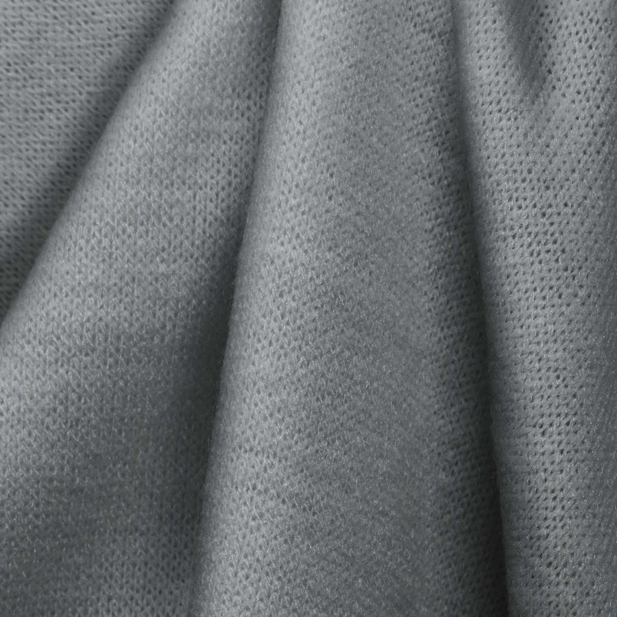 La tela base, denominada Punto Jersey de Tacto Algodón - Atenas, está compuesta por 81% poliéster, 15% acrílico y 4% elastano, con un gramaje de 239 gr/m2 y un ancho de 150 cm. Su color liso impreso es de tonalidad Gris, con un matiz plateado metálico. El CMYK del color es 22,12,15,0, lo que indica una predominancia de tonos cianes y magentas. La combinación de estos colores resulta en un Gris sofisticado y elegante que combina muy bien con tonos tierra y madera.