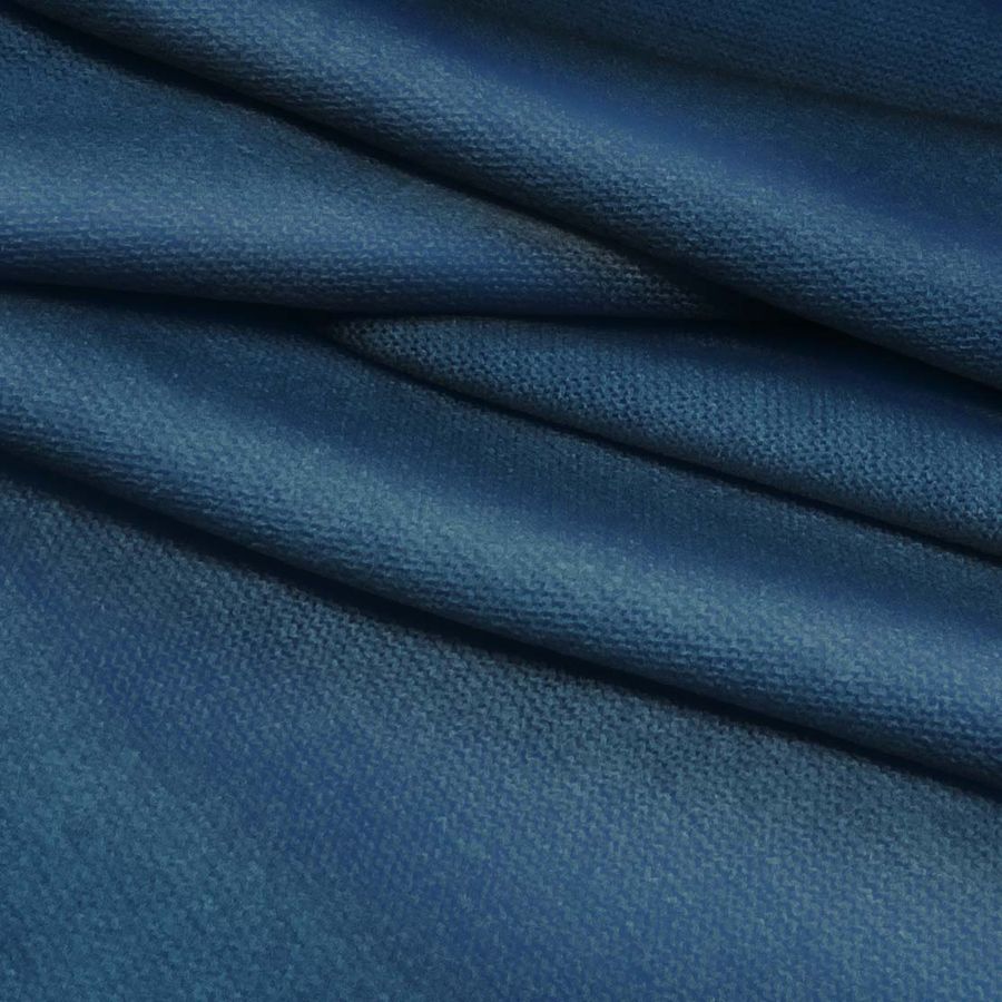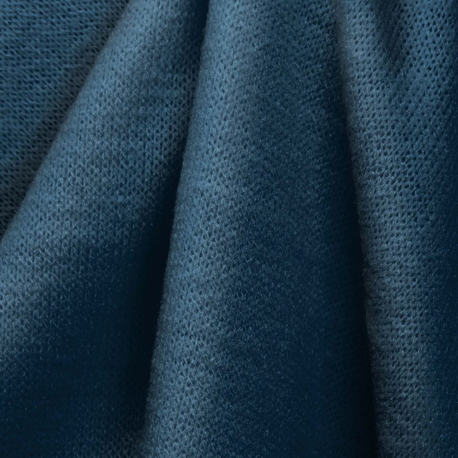La tela base, Punto Jersey de Tacto Algodón - Atenas, tiene una composición de 81% POLIÉSTER, 15% ACRÍLICO, 4% ELASTANO y un gramaje de 239 gr/m2. El color liso impreso es Azul-Gris Azul Oscuro (CMYK: 99 72 42 38) y tiene una textura suave y elástica. Este color secundario se combina bien con grises, blanco y negro.