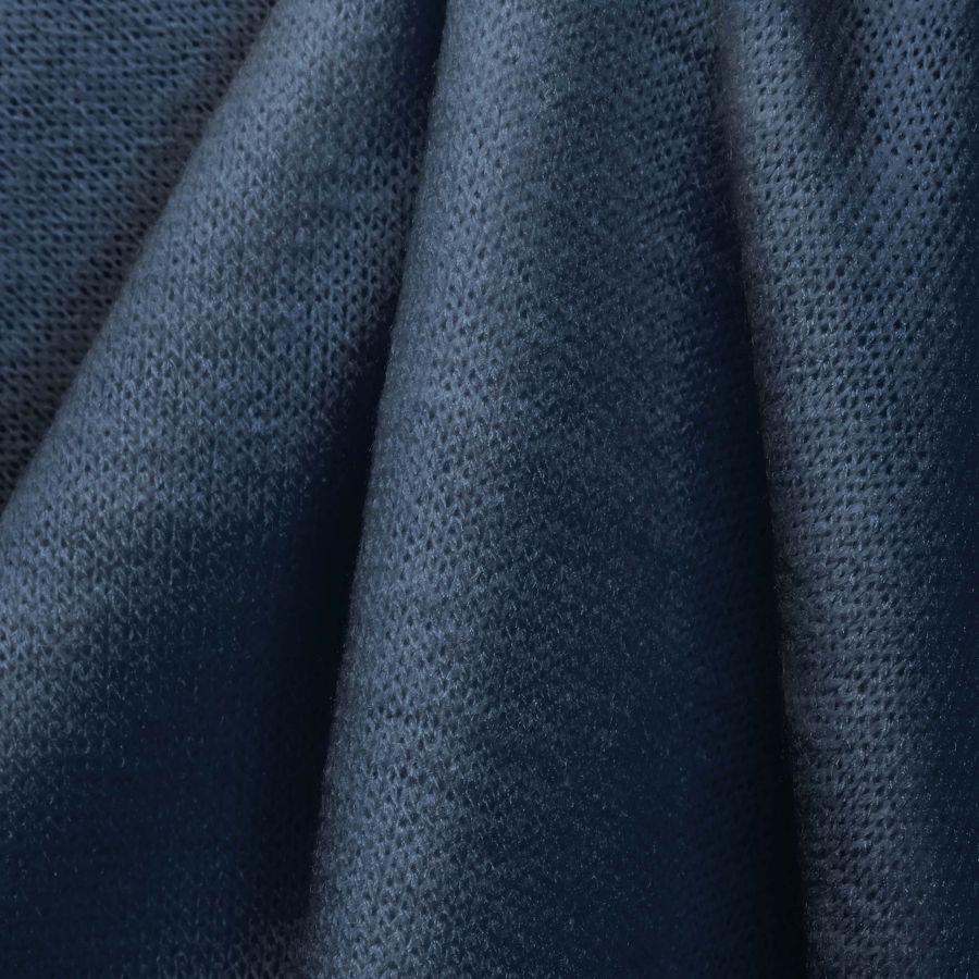 La tela base Punto Jersey de Tacto Algodón - Atenas presenta una composición de 81% poliéster, 15% acrílico y 4% elastano, con un gramaje de 239 gr/m2 y un ancho de 150 cm. Su color liso impreso es un Azul Pizarra Oscura, cuyo CMYK es de 97 76 42 42. Este color simboliza la profundidad y la estabilidad, mientras que técnicamente su combinación de tintas cian, magenta, amarillo y negro lo hacen perfecto para combinar con colores en rango de grises, blancos, beiges y negros. Cabe destacar que la tela está impresa con color liso únicamente por una cara, por medio de impresión digital textil. En cuanto a características, la tela presenta una textura y tacto suave y elástico, mientras que el color impreso es de alta calidad y durabilidad.