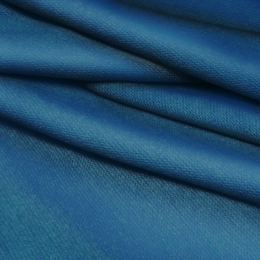 La tela base del tejido es un Punto Jersey de Tacto Algodón - Atenas. El color liso impreso es un tono azul marino púrpura, que viene dado por una combinación de tintas en el CMYK: 97 de cian, 65 de magenta, 35 de amarillo y 24 de negro. Se trata de un color profundo y elegante que combina perfectamente con grises, azules oscuros y blancos. Cabe destacar que la tela está impresa con el color liso a una sola cara por impresión digital textil, lo que confiere una alta calidad de impresión y durabilidad.
