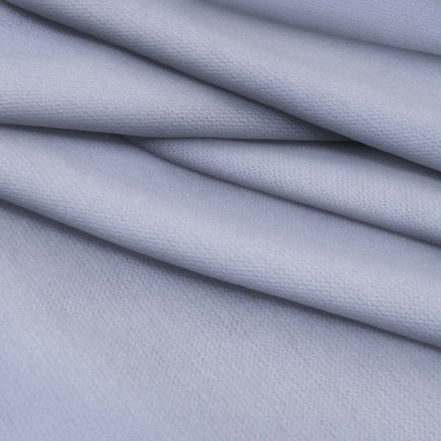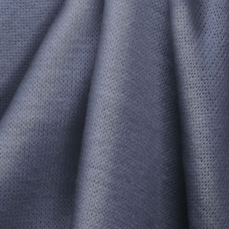 La tela base es el Punto Jersey de Tacto algodón - Atenas, una tela de punto con una composición de 81% poliéster, 15% acrílico y 4% elastano, de 239 gr/m2 y 150 cm de ancho. El color liso impreso es Azul Gris Pizarra, cuyo CMYK es 42 31 9 0, compuesto por una mezcla de tintas Cyan, Magenta y Yellow en diferentes proporciones. Este color es simbólico y técnico, ya que combina la estabilidad y el equilibrio del Azul con la elegancia y la sofisticación del Gris Pizarra, siendo un tono sólido y versátil adaptable a diferentes estilos y tendencias. Además, el Azul Gris Pizarra se combina perfectamente con otros colores como el Blanco, el Negro o el Beige.