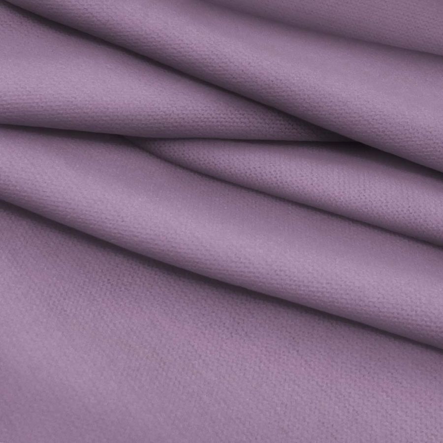 La tela base es el Punto Jersey de Tacto Algodón - Atenas, de composición 81% poliéster, 15% acrílico y 4% elastano, con un gramaje de 239 gr/m2 y un ancho de 150cm. El color liso impreso es Morado Lila Francesa, con una combinación de tinta Cyan 51, Magenta 58, Yellow 28 y Black 11, reflejando un tono lila suave con un toque de azul. En cuanto a las características del color, es suave y agradable al tacto, elástico y resistente a las arrugas. Este tono se combina especialmente bien con tonos grises y rosados, logrando una estética elegante y femenina.