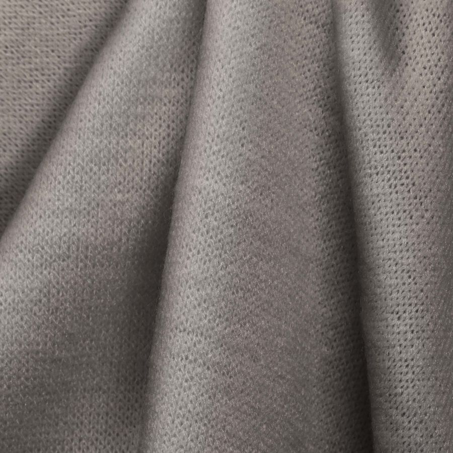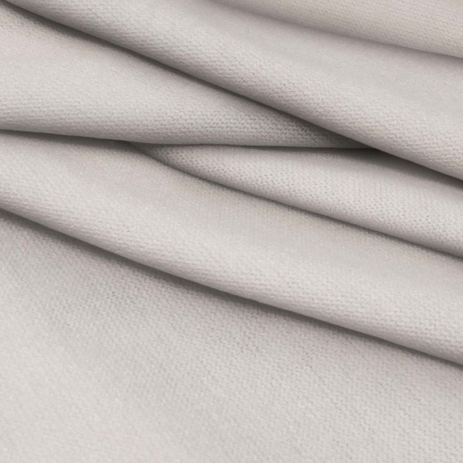 La tela base de este tejido es un Punto Jersey de Tacto Algodón llamado Atenas, compuesto por un 81% de poliéster, un 15% de acrílico y un 4% de elastano, con un gramaje de 239 gr/m2 y un ancho de 150cm. El color liso impreso en la tela combina el crudo y la plata pálida en una proporción de 12% de tinta cian, 16% de tinta magenta, 18% de tinta amarilla y 0% de tinta negra, lo que resulta en un tono suave y elegante. Este color secundario es ideal para combinarlo con tonos rosados y marrones claros, creando una armonía acogedora y sofisticada.