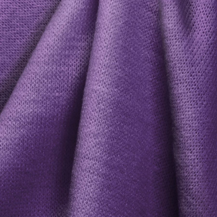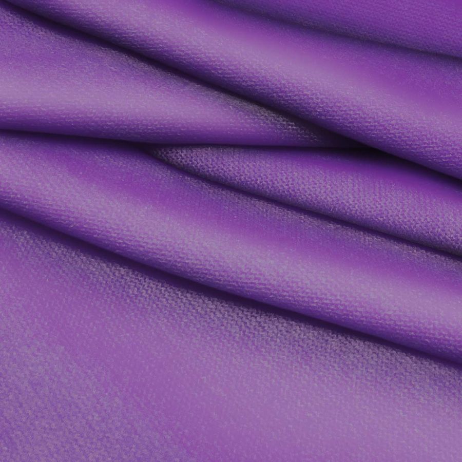 La tela base es un Punto Jersey de Tacto Algodón - Atenas, compuesta por 81% poliéster, 15% acrílico y 4% elastano, con un gramaje de 239 gr/m2, ancho de 150 cm y apta para diversas aplicaciones. El color liso impreso es morado con tonalidad iris morado, que se obtiene a través de la tecnología de impresión por sublimación (poliéster), utilizando una tinta cmyk con un 66% de cyan, un 80% de magenta, un 6% de yellow y un 0% de black.