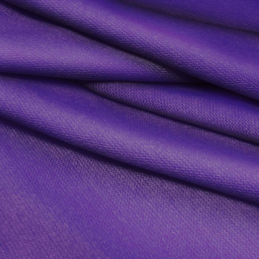La tela base, Punto Jersey de Tacto Algodón - Atenas, tiene una composición de 81% poliéster, 15% acrílico y 4% elastano, con un gramaje de 239 gr/m2 y un ancho de 150 cm. El color liso impreso es morado e índigo, con una tinta cyan de 87, magenta de 100, yellow de 12 y black de 3, obteniendo un CMYK de 87 100 12 3. Este color secundario transmite un estilo vibrante y profundo, resaltando la creatividad y la originalidad. Es un tono pensativo que aporta calma y misterio, ideal para combinar con neutros como grises, beige y blanco, pero también funciona bien con colores más brillantes como rosa fucsia, naranja y amarillo. La tela base está impresa con el color liso a una sola cara por impresión digital textil.