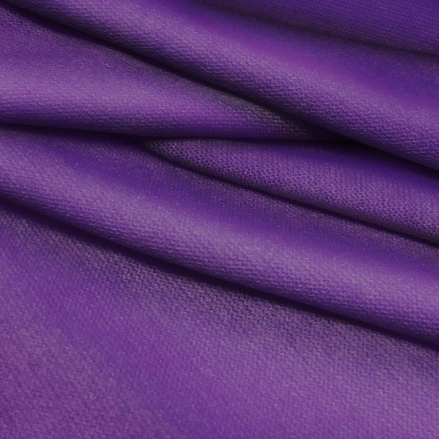 La tela base es un Punto Jersey de Tacto Algodón - Atenas, con una composición de 81% POLIÉSTER, 15% ACRÍLICO y 4% ELASTANO. El color liso impreso que se utiliza es un Morado Iris, que se crea a través de una combinación de tintas Cyan (82), Magenta (100), Yellow (19) y Black (7), con un CMYK de 82 100 19 7. Este color secundario tiene una connotación simbólica de la creatividad, la imaginación y el pensamiento profundo, mientras que técnicamente se caracteriza por su intensidad y vibración. Combina bien con tonos azules y verdes oscuros, así como con tonos fríos y claros como el blanco y el gris.