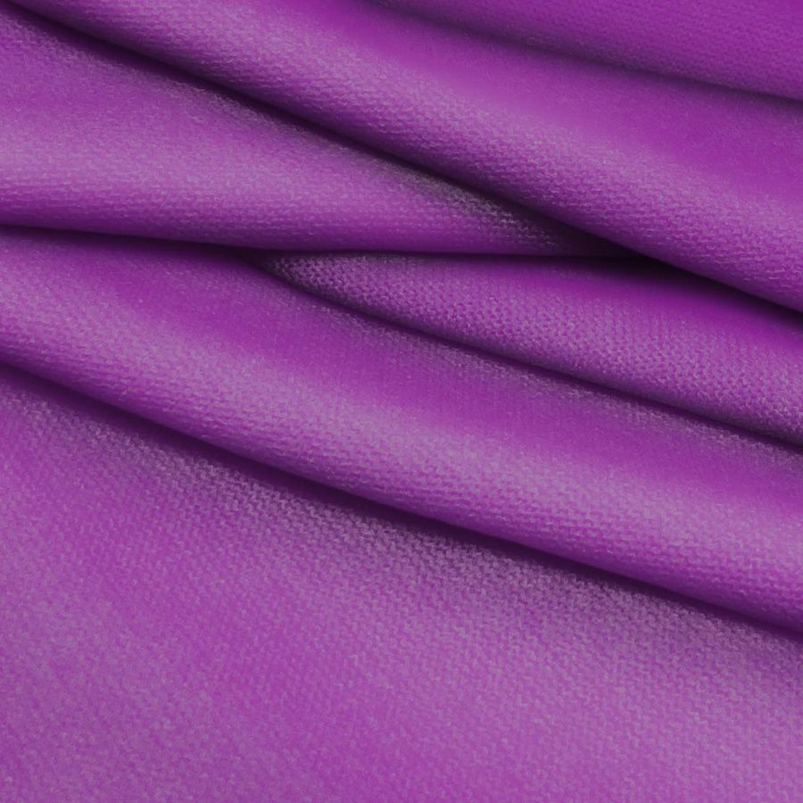 La tela base, Punto Jersey de Tacto Algodón - Atenas, presenta una composición de 81% poliéster, 15% acrílico y 4% elastano, con un gramaje de 239 gr/m2 y un ancho de 150 cm. Su suave y elástica textura la convierte en un tejido ideal para prendas de punto, vestidos, bufandas y mantas. Este tejido está impreso a una sola cara por impresión digital textil con un color liso morado mermelada púrpura, el cual se compone de un CMYK de 59 89 2 0.