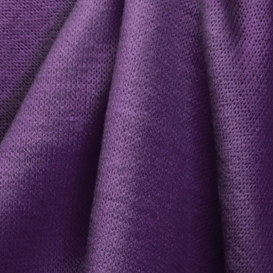 La tela base es Punto Jersey de Tacto Algodón - Atenas, compuesta por 81% de poliéster, 15% de acrílico y 4% de elastano y con un gramaje de 239 gr/m2. El color liso impreso es Morado oscuro, con un CMYK de 76 96 22 12. El color es intenso y profundo, con un aspecto aterciopelado y lujoso. Simboliza la elegancia y el misterio, y es perfecto para prendas de invierno y otoño/invierno 2021. El Morado oscuro combina bien con tonos neutros como el blanco y el gris, así como con tonos más intensos como el rojo oscuro y el dorado. Es importante destacar que la tela está impresa con el color liso a una sola cara por impresión digital textil.