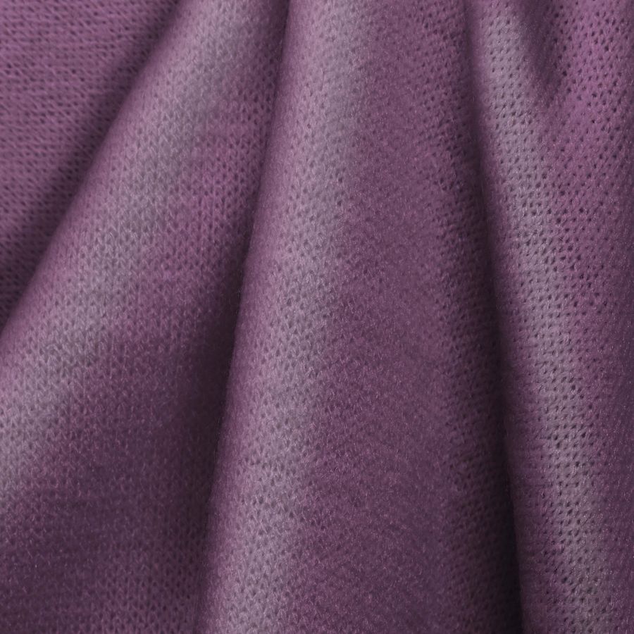 La tela base es el Punto Jersey de Tacto Algodón - Atenas, con una composición de 81% POLIÉSTER, 15% ACRÍLICO y 4% ELASTANO, un gramaje de 239 gr/m2 y un ancho de 150 cm. El color liso impreso es un Morado Ciruela con CMYK de 26, 53, 5, 0 respectivamente. Este color es sofisticado y moderno, su tono rico se caracteriza por ser intenso y cálido, con una base de matices violeta y un subyacente azul oscuro, que puede combinarse perfectamente con colores como el rosa oscuro, el amarillo claro y el gris para crear contrastes estilísticos interesantes. La tela base está impresa con el color liso a una sola cara por impresión digital textil. La tela es una tela de punto con una textura suave y elástica que da una comodidad extrema al contacto con la piel. Las aplicaciones de esta tela son diversas; se utiliza comúnmente en la fabricación de ropa de invierno, como lencería, pijamas, jerseys, tops y vestidos, así como en la moda infantil y para accesorios como calcetines, fulares y bufandas. Es ideal para la fabricación de prendas de punto y es perfecta para trabajar con diseños más complejos y con detalle. Los cuidados que deben tenerse en cuenta para esta tela incluyen no blanquear, lavar a temperatura máxima de 30ºC, no lavar en seco con tricloroetileno, planchar a temperatura fría y no utilizar la secadora. La tecnología de impresión utilizada para la fabricación de esta tela es la sublimación (Poliéster), una técnica que permite una impresión digital de alta calidad, que da una gran nitidez y durabilidad al estampado del color. Este proceso crea un estampado que no se desgasta ni se pela, brindando a la tela base una gran capacidad de exhibición del color morado ciruela.