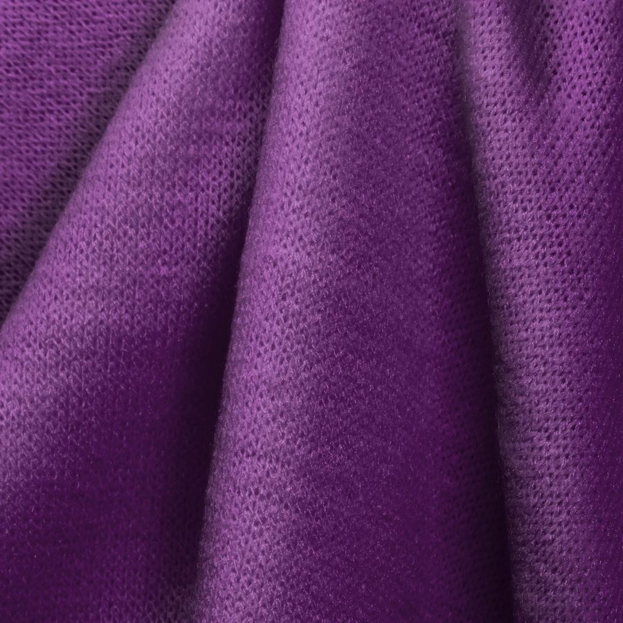 La tela base es un Punto Jersey de Tacto Algodón - Atenas, compuesta por 81% POLIÉSTER, 15% ACRÍLICO y 4% ELASTANO, con un gramaje de 239 gr/m2 y un ancho de 150 cm. El color liso impreso es un Morado Mermelada Púrpura, con un CMYK de 69 100 10 3. Este color es intenso y vibrante, siendo una opción perfecta para crear prendas llamativas y con personalidad. Combina a la perfección con otros tonos fríos como el azul marino y el verde botella, así como con tonos más cálidos como el rosa fuerte o el naranja oscuro.