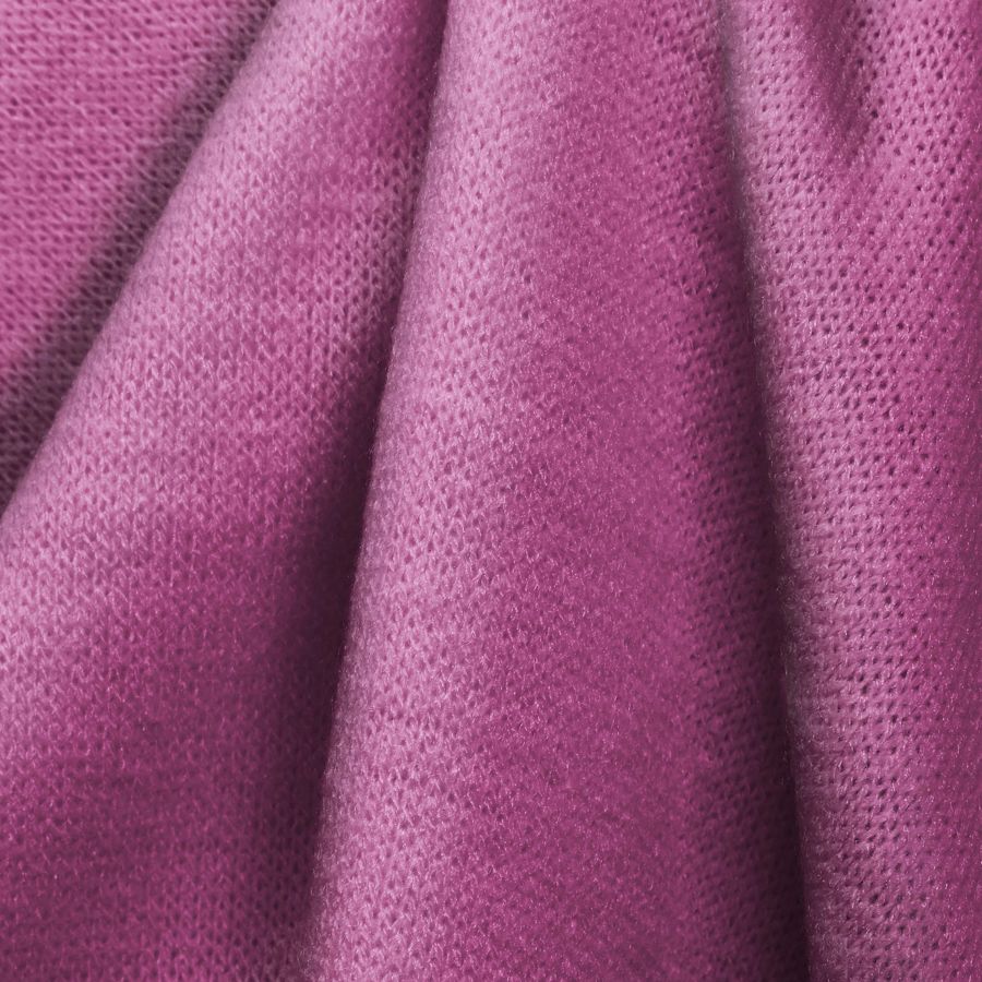La tela base del tejido es el Punto Jersey de Tacto Algodón - Atenas, con una composición del 81% de poliéster, 15% de acrílico y 4% de elastano. El color liso impreso en la tela es una combinación de tonos rosa y ciruela rosa, como refleja el contenido de CMYK de 22 74 5 0. Este color transmite un ambiente de calidez y ternura, perfecto para prendas de vestir femeninas y de ambiente hogareño. Además, el color rosa combina bien con colores neutros como el blanco, crema y gris, y también con tonos más atrevidos como el rojo y el verde oscuro.