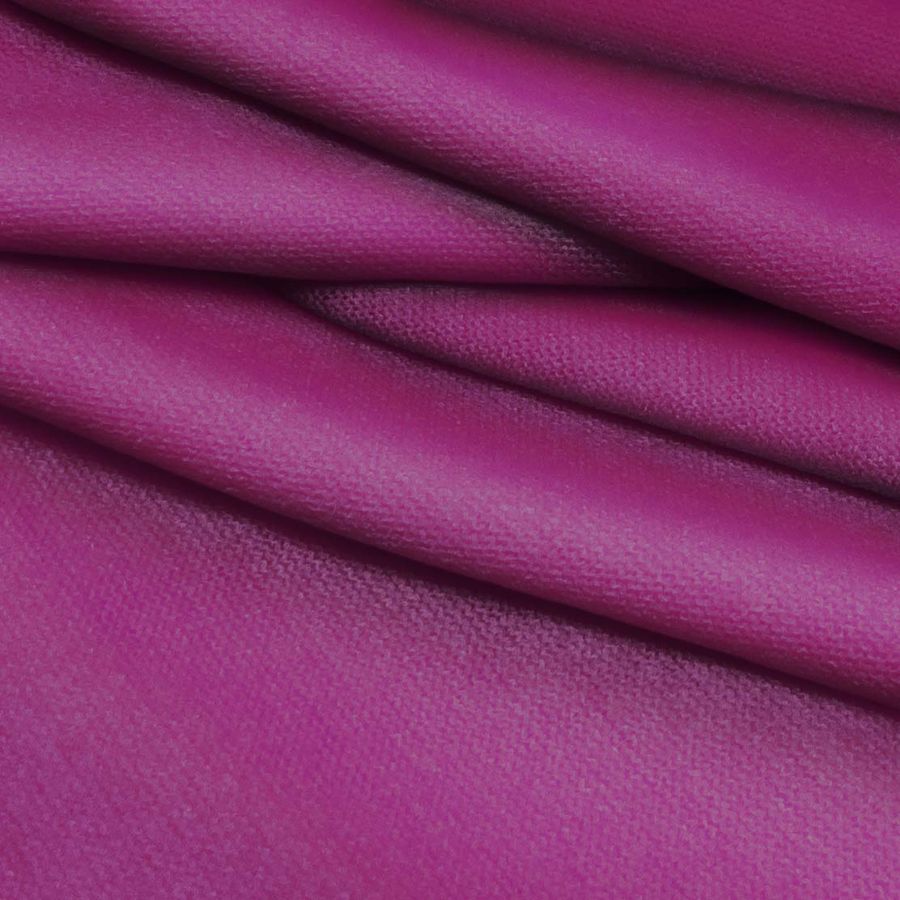 La tela base es el Punto Jersey de Tacto Algodón - Atenas, con una composición de 81% POLIÉSTER, 15% ACRÍLICO, y 4% ELASTANO. El color liso impreso es de tonalidades Morado Berenjena, representado por un CMYK de 53 99 25 18. La coloración Berenjena es una mezcla entre la energía del rojo y la serenidad del azul, lo que la convierte en un color intenso pero que a su vez transmite tranquilidad. Este color puede utilizarse en combinación con otros colores terrosos o con tonos fríos como el azul y el verde para crear una estética cálida y acogedora. Es importante tener en cuenta que el tejido está impreso con el color liso a una sola cara por impresión digital textil, siendo ésta la técnica que permite imprimir de forma precisa y detallada patrones y diseños en prendas de tejido de punto.