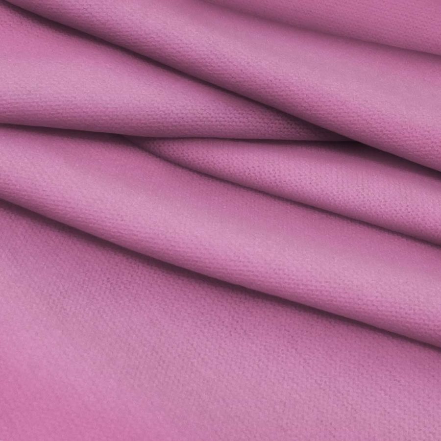 La tela base es el Punto Jersey de Tacto Algodón, Atenas, con una composición de 81% poliéster, 15% acrílico y 4% elastano. El color liso impreso es un Rosa Cadillac con un CMYK de 20 67 11 0, lo que indica una alta cantidad de tinta magenta que le da un tono rosado intenso con una leve mezcla de cian y amarillo para dar profundidad. Este color simboliza el amor, la dulzura y el romanticismo. Combina perfectamente con colores neutros como el blanco y gris, así como con tonos oscuros como el azul marino y el negro.