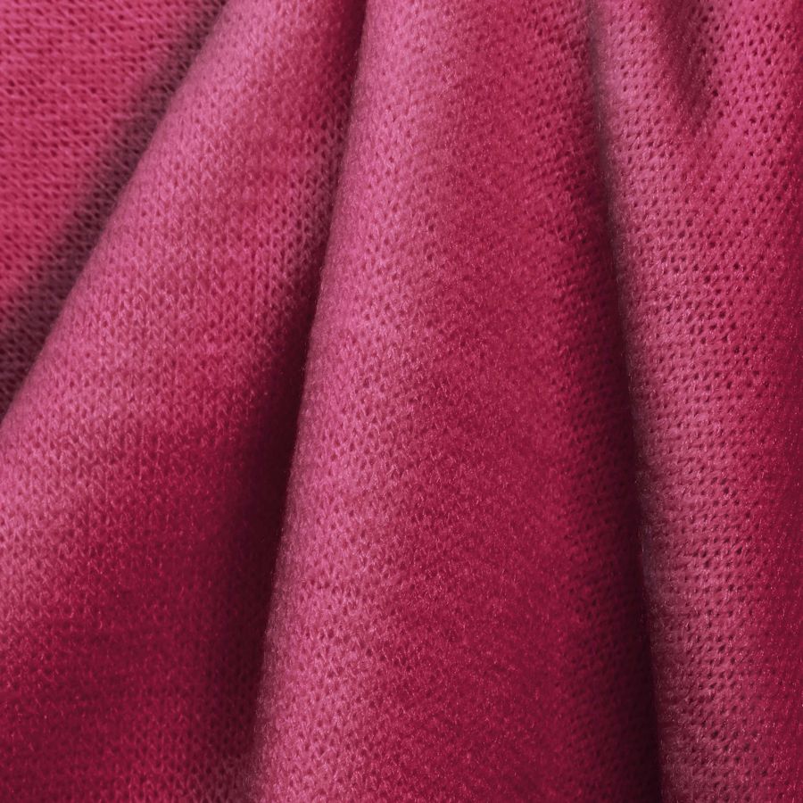 La tela base es el Punto Jersey de Tacto Algodón - Atenas, con una composición de 81% poliéster, 15% acrílico y 4% elastano, con un gramaje de 239 gr/m2 y un ancho de 150 cm. El color liso impreso es Rosa Quemado, con un CMYK de 18 95 43 7. Este color es una mezcla de rojo y marrón, lo que lo hace ideal para los meses de otoño e invierno. Combina perfectamente con colores como el blanco, gris, beige, verde oscuro y marrón.
