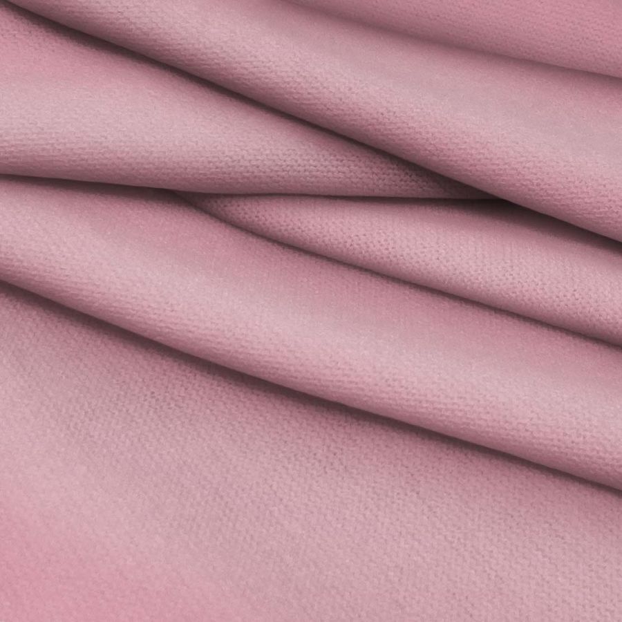 La tela base es el Punto Jersey de Tacto Algodón - Atenas, compuesta de 81% poliéster, 15% acrílico y 4% elastano, con un gramaje de 239 gr/m2 y una anchura de 150 cm. El color liso impreso es una combinación de rosa y marrón, con un CMYK de 14 51 25 1, lo que le da un tono predominantemente rosa con un matiz marrón sutil. Este color secundario simboliza la delicadeza y la dulzura con una pizca de calidez y sofisticación.