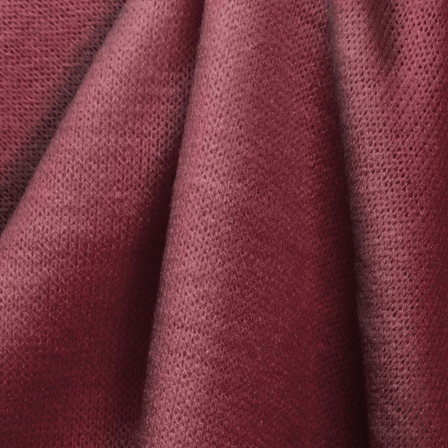 La tela base es el Punto Jersey de Tacto Algodón - Atenas, con una composición del 81% poliéster, 15% acrílico y 4% elastano, con un gramaje de 239 gr/m2 y una anchura de 150 cm. El color liso impreso es rojo borgoña, con una combinación de tintas CYMK de 29 86 56 32. Este color presenta una simbología de elegancia, sofisticación y pasión, y técnica-mente se caracteriza por su luminosidad y saturación. Se combina excelentemente bien con colores neutros como el blanco, negro y gris, así como con tonalidades de verde, azul y tonos tierra.