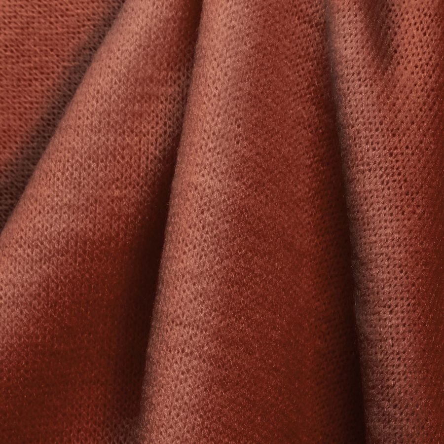 El tejido está impreso con el color liso a una sola cara por impresión digital textil, lo que significa que el color solo se encuentra en una cara del tejido, lo que permite una mayor versatilidad en su uso. Entre las características generales del tejido, destacan su suavidad y elasticidad, lo que proporciona una gran comodidad al usuario. Estas características se trasladan al color impreso, lo que hace que el Rojo oscuro tenga una textura y un tacto suave y elástico.