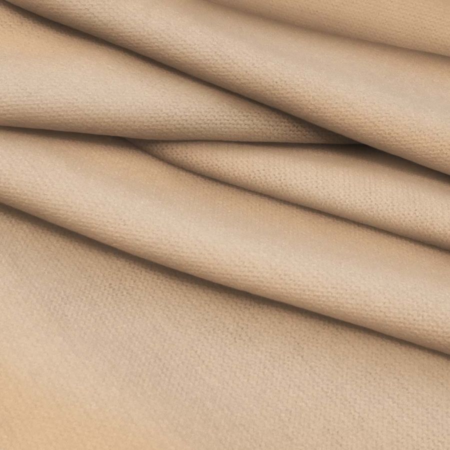 El Punto Jersey de Tacto Algodón - Atenas es una tela de punto suave, elástica y resistente compuesta por 81% de poliéster, 15% de acrílico y 4% de elastano. El color liso impreso, llamado Marron Azúcar Morena, tiene un CMYK de 10 34 48 2 y destaca por su tonalidad cálida y suave. Se trata de un color secundario que combina perfectamente con otros tonos terrosos como beige, marrón oscuro, dorado y naranja oscuro.
