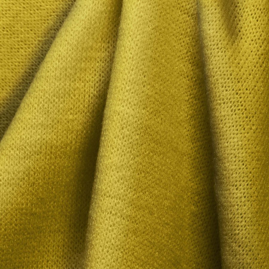 La tela base es el Punto Jersey de Tacto Algodón - Atenas, que se compone de 81% poliéster, 15% acrílico y 4% elastano. Su peso es de 239 gr/m2 y tiene un ancho de 150 cm. El color liso impreso de esta tela es Amarillo-Marrón Galleta con un CMYK de 20 29 98 7. Este color es una combinación de tonos cálidos y neutros que evocan la calidez y la rusticidad de la temporada otoño/invierno. Además, el color combina bien con tonos terrosos y marrones oscuros, aportando equilibrio y elegancia.