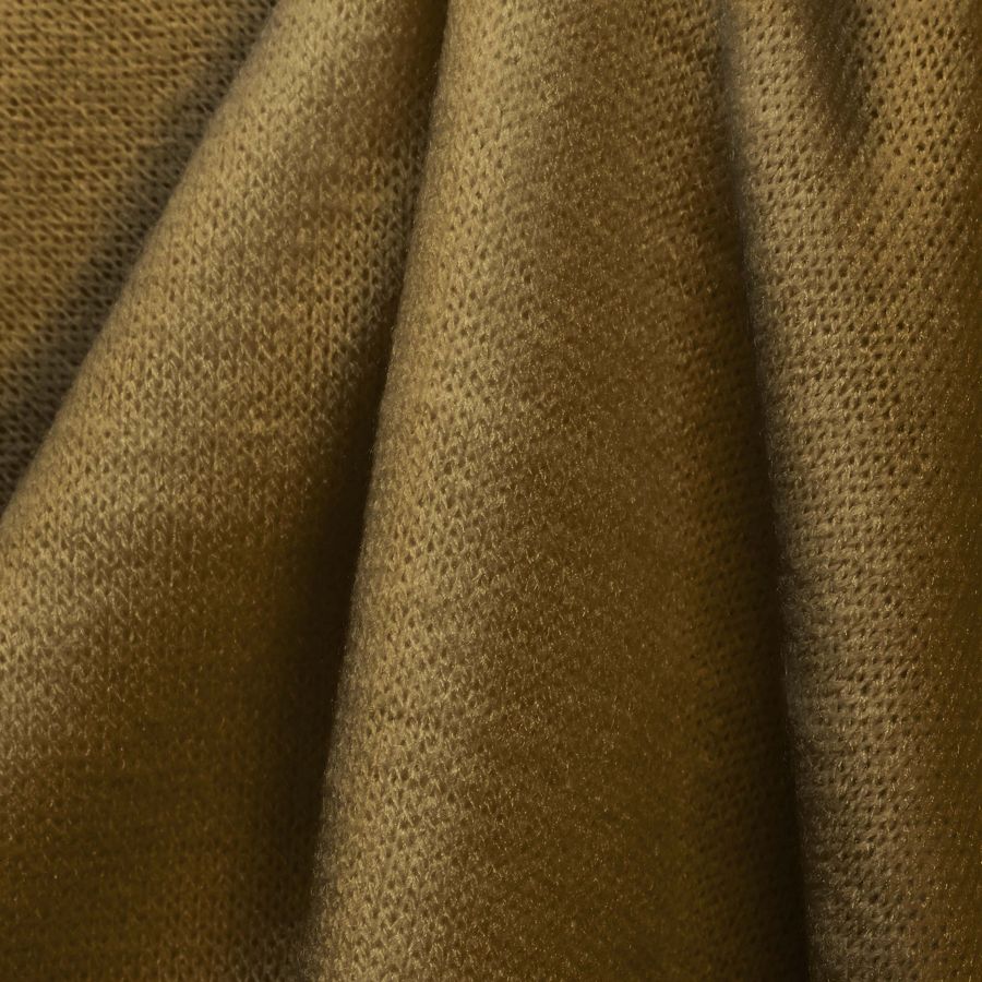 La tela base es el Punto Jersey de Tacto Algodón - Atenas, con una composición de 81% poliéster, 15% acrílico y 4% elastano, un gramaje de 239 gr/m2 y un ancho de 150 cm. El color liso impreso tiene un CMYK de 38 55 100 44, lo que se traduce en un marrón oscuro con una base de amarillo y magenta. Este color secundario combina perfectamente con tonos tierra y beige, así como con tonos más intensos como el verde oscuro o el burdeos.