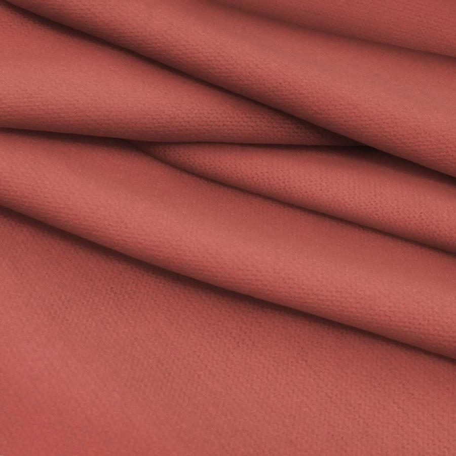 La tela base de este tejido es un punto jersey de tacto algodón, conocido como Atenas. Su composición es de 81% poliéster, 15% acrílico y 4% elastano, además cuenta con un gramaje de 239 gr/m2 y un ancho de 150 cm. El color liso impreso en este tejido es Rojo Ladrillo refractario, identificado a través de la combinación CMYK 24 75 66 16. Este color es profundo y vibrante, con un tono cálido que confiere calidez y fuerza visual al tejido. El color ladrillo es combinable con colores cálidos como los tonos tierra, naranjas y dorados, y también con colores más fríos como el color azul marino y el gris.