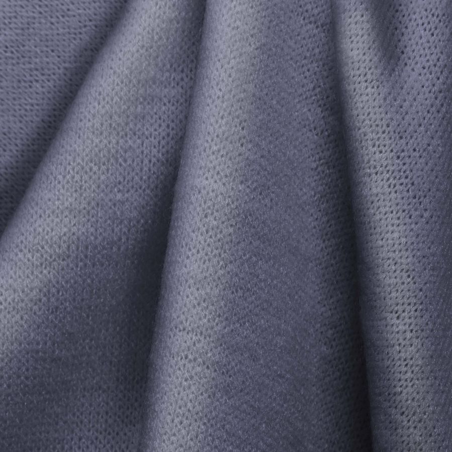 La tela base es el Punto Jersey de Tacto Algodón - Atenas, compuesta por 81% poliéster, 15% acrílico y 4% elastano, con un gramaje de 239 gr/m2 y un ancho de 150 cm. El color liso impreso en la tela base es una combinación de morado, gris pizarra y azul oscuro, con una tinta cyan del 38%, magenta del 32%, yellow del 7%, y un negro del 0%, lo que corresponde al CMYK 38 32 7 0. Este color transmite una sensación de serenidad y estabilidad, siendo perfecto para ropa de invierno. Se combina muy bien con tonos neutros como beiges o blancos, así como con tonos más oscuros como negros o azules marino.