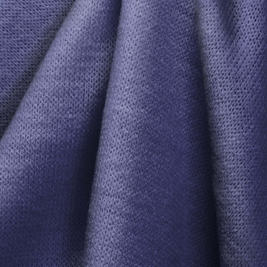 La tela base es el Punto Jersey de Tacto Algodón - Atenas, compuesta por 81% POLIÉSTER, 15% ACRÍLICO, 4% ELASTANO, con un gramaje de 239 gr/m2 y un ancho de 150cm. El color liso impreso es Morado-Azul marino púrpura, con una tinta Cyan del 80, Magenta del 73, Yellow del 22 y Black del 7, lo que equivale a un CMYK de 80 73 22 7.