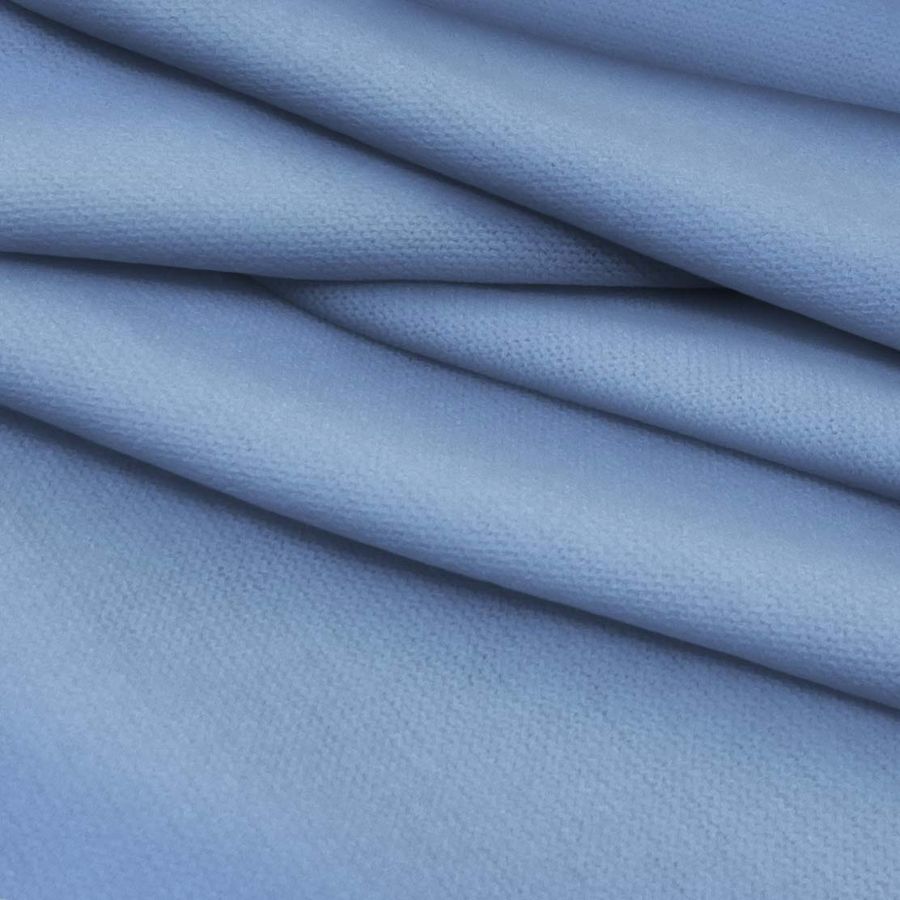 La tela base de este tejido es el Punto Jersey de Tacto Algodón - Atenas, con una composición de 81% poliéster, 15% acrílico y 4% elastano. El color liso impreso es un Azul-Azul violeta claro representado por el CMYK 62 40 5 0. Este color es sinónimo de sofisticación y tranquilidad, que combina perfectamente con otros colores como el blanco, el gris y el negro.