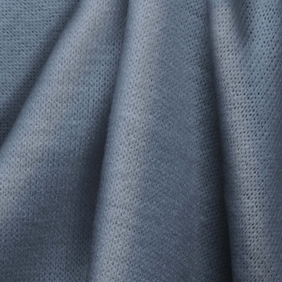 La tela base es el Punto Jersey de Tacto Algodón - Atenas, con una composición de 81% poliéster, 15% acrílico y 4% elastano. Su color liso impreso es azul-grisáceo, con una combinación de tinta cyan 40, magenta 19, amarillo 7 y negro 0, siendo su código cromático CMYK 40 19 7 0. Este color secundario simboliza la calma y la estabilidad, además de ser muy versátil y fácil de combinar con una gran variedad de colores, como tonos pastel, neutros y oscuros.