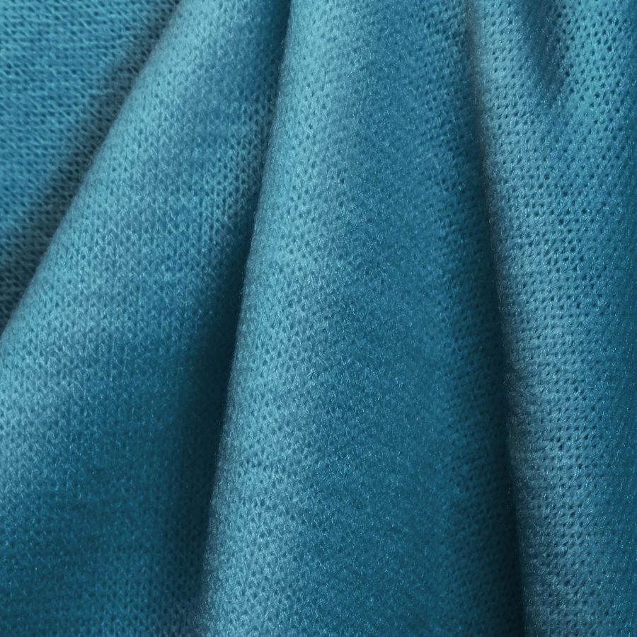 La tela base es el Punto Jersey de Tacto Algodón - Atenas, compuesta por 81% de poliéster, 15% de acrílico y 4% de elastano. Es una tela de punto con un gramaje de 239 gr/m2 y un ancho de 150 cm. El color liso impreso es un Azul Hielo Azul Glacial, con un CMYK de 79 33 25 6. Este color transmite una sensación de frescura y serenidad, evocando a los paisajes invernales. A nivel técnico, se trata de un color secundario compuesto por distintas cantidades de cian, magenta, amarillo y negro, siendo el cian el predominante. Este color combina perfectamente con una amplia gama de azules, grises y blancos.
