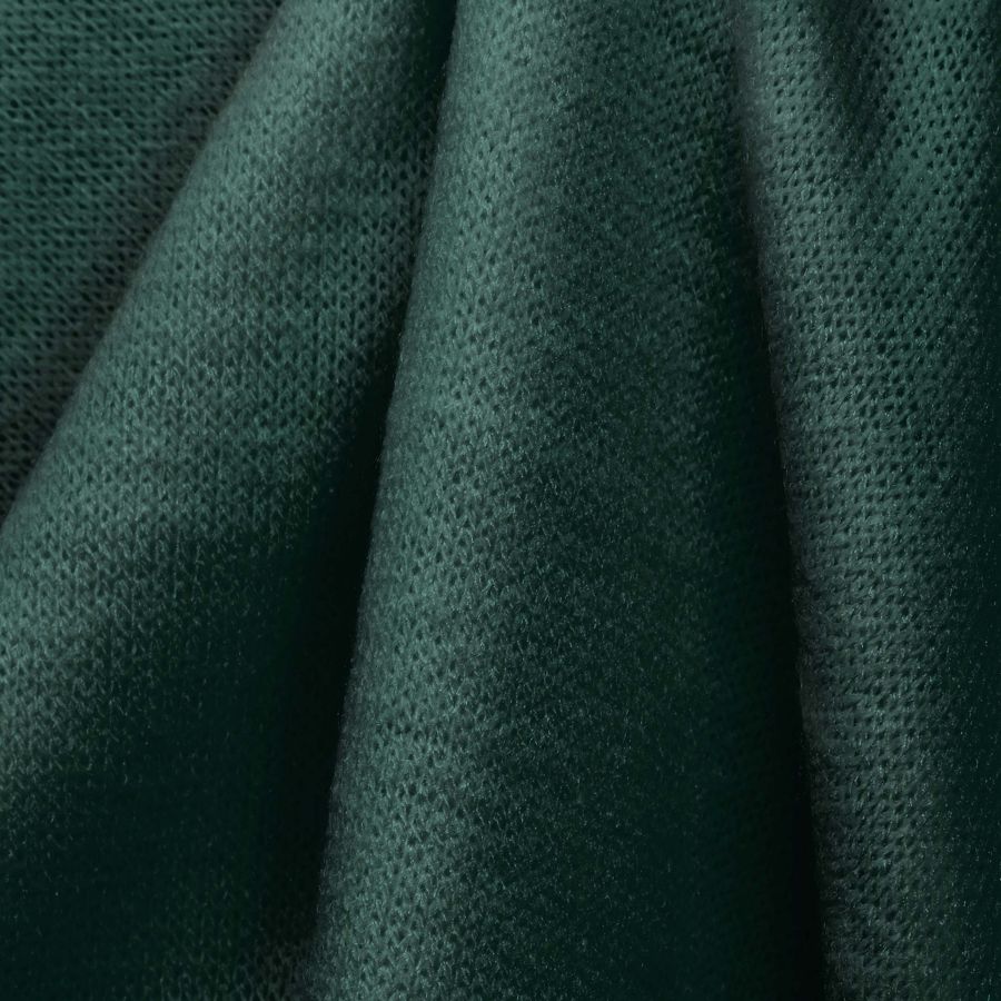 La tela base, Punto Jersey de Tacto Algodón - Atenas, es un tejido de punto compuesto por 81% de poliéster, 15% de acrílico y 4% de elastano, con un gramaje de 239 gr/m2 y un ancho de 150 cm. El color liso impreso es de un verde bosque oscuro, con un contenido CMYK de 91 50 73 66. El color transmite una sensación de profundidad y frescura, y combina especialmente bien con tonos tierra y beige. El tejido está impreso a una sola cara por impresión digital textil, lo que permite una gran precisión y definición en los diseños.