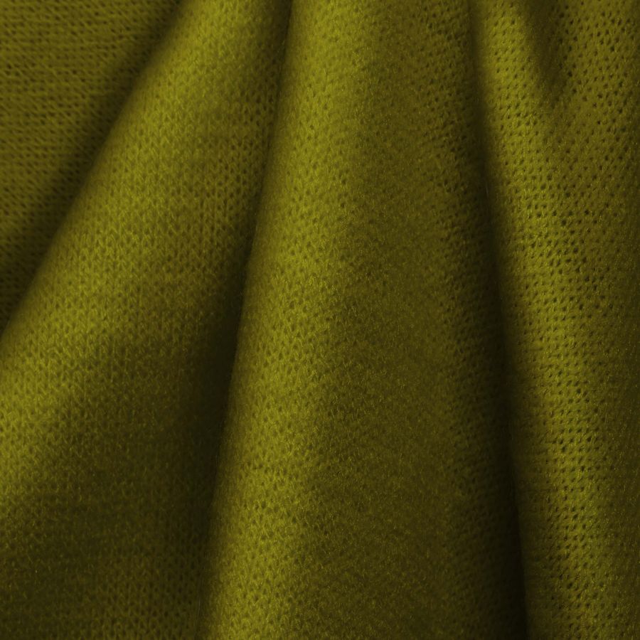 La tela base Punto Jersey de Tacto Algodón - Atenas se presenta en un color liso impreso Verde Olivo con un CMYK de 43, 35, 100, 20. Este color se caracteriza por ser un tono de verde oscuro con un matiz terroso y profundo. El color se complementa con otros tonos terrosos como marrones y grises, así como con tonos amarillos, mostaza y ocre.