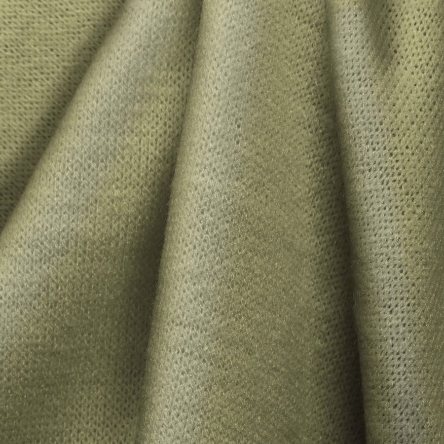 La tela base de esta prenda es un Punto Jersey de Tacto Algodón - Atenas, compuesta por un 81% de poliéster, un 15% de acrílico y un 4% de elastano, con un peso de 239 gr/m2 y un ancho de 150 cm. El color liso impreso es de tonos amarillo-caqui, con un CMYK de 7 1 42 0. Este color secundario simboliza la energía y vitalidad de la naturaleza, y técnicamente es un tono cálido que combina muy bien con tonos marrones, verdes y azules oscuros. La tela está impresa a una sola cara, por impresión digital textil, lo que garantiza un color brillante y duradero.