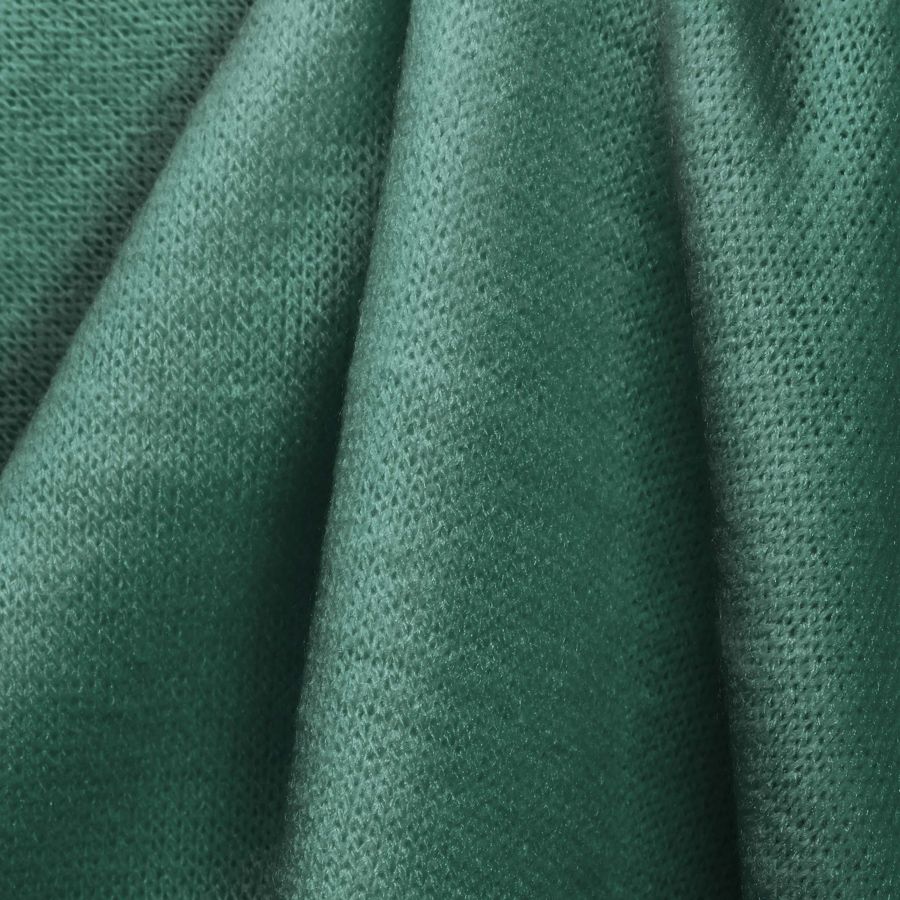 La tela base es el Punto Jersey de Tacto Algodón - Atenas, con una composición de 81% poliéster, 15% acrílico y 4% elastano. El color liso impreso es un hermoso tono de verde mar profundo. El CMYK del color liso es 76, 31, 61 y 17, lo que indica que es una combinación vibrante de cian, magenta, amarillo y negro. El verde mar profundo simboliza la estabilidad, la confianza y la seguridad en uno mismo. Técnicamente, la tela es texturizada, suave y elástica, lo que la hace cómoda de usar.