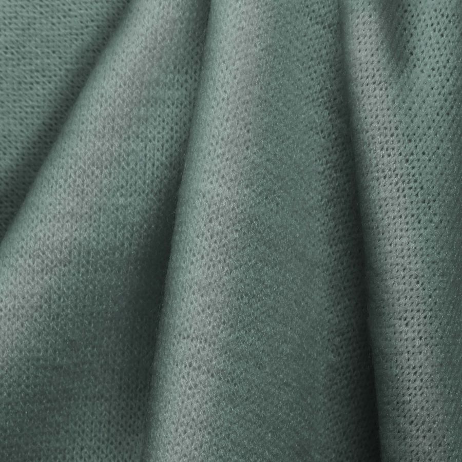 La tela base de nuestro tejido es el Punto Jersey de Tacto Algodón - Atenas, que se compone de 81% Poliéster, 15% Acrílico y 4% Elastano, con un gramaje de 239gr/m2 y un ancho de 150cm. El color liso impreso es un verde mar opaco, cuyos atributos son: Tinta Cyan de 39, Tinta Magenta de 10, Tinta Yellow de 28 y Tinta Black de 0, con un CMYK de 39 10 28 0. Este color simboliza el mar profundo y la naturaleza en su estado más puro. Se combina armoniosamente con tonos marrones, ocres, beige y blancos.