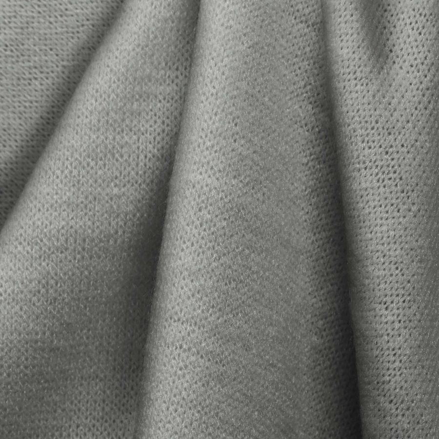 La tela base es un Punto Jersey de Tacto Algodón llamado Atenas, con una composición de 81% POLIÉSTER, 15% ACRÍLICO, 4% ELASTANO y un gramaje de 239 gr/m2. El color liso impreso es de tonalidades gris platino, con una combinación de tinta cyan de 12, magenta de 5, yellow 12 y black 0, reflejando el contenido del CMYK. El color secundario es un grisáceo suave, que combina especialmente bien con tonalidades pastel.