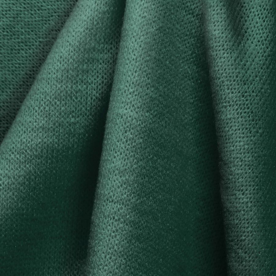 La tela base es el Punto Jersey de Tacto Algodón - Atenas, compuesto por 81% poliéster, 15% acrílico y 4% elastano. El color liso impreso es un verde mar profundo, que refleja un CMYK de 84 40 70 42. Este color simboliza la vida marina y la profundidad del océano, pero también representa la estabilidad y seguridad. En combinación con otros colores como el blanco, gris, beige o marrón, resulta en una paleta fresca y tranquila. Es importante destacar que el tejido está impreso con el color liso a una sola cara por impresión digital textil, lo que proporciona una alta resolución y saturación del color.